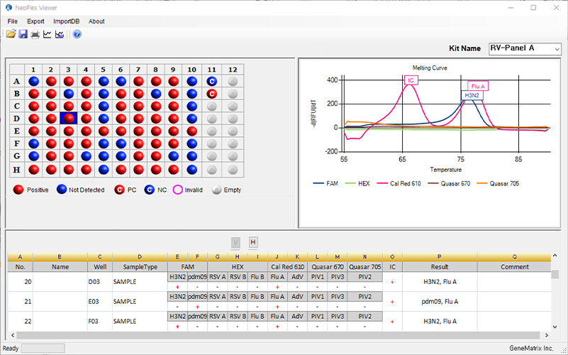 | NR03A | NeoPlex™ RV-Panel A Detection Kit | Simultaneous Detection of 10 Viral Respiratory Pathogens in a Single Test | Multiplex Real-time PCR | 96 Tests/Kit |